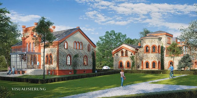 mehrEs entstehen insgesamt 17 exklusive Wohnungen mit Balkonen, Loggien und Gartenanteilen, eingebettet in ein denkmalgeschütztes Gebäudeensemble aus dem 19. Jahrhundert, umgeben von einer prachtvollen Gartenanlage.